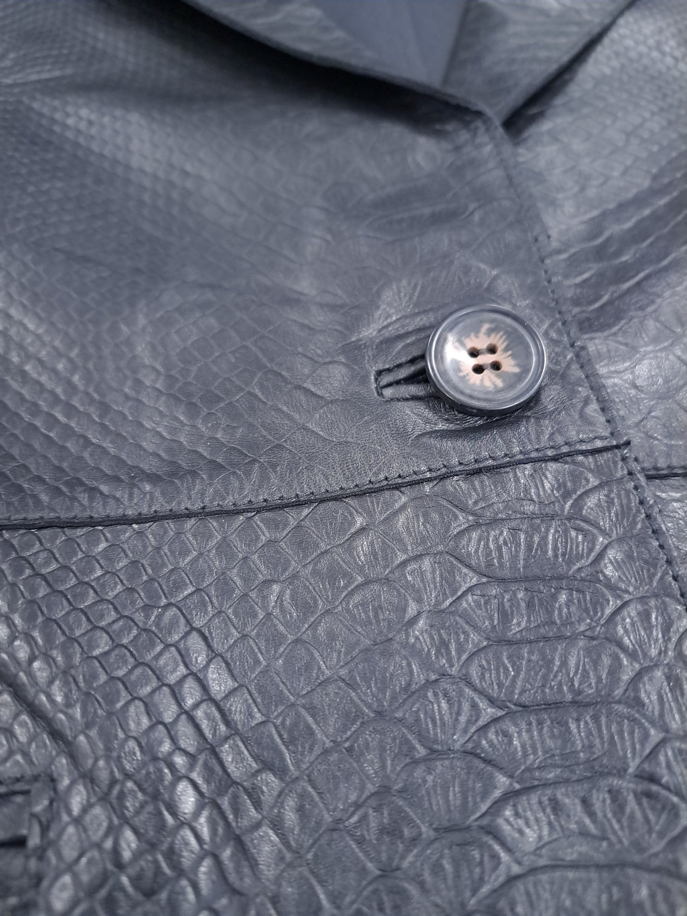 Innovative Bonded Lining: Unlike traditional bulky blazers, this piece features a bonded lining. This technical construction fuses the lining directly to the leather, offering a sleek, "second-skin" feel that is exceptionally lightweight and breathable.
