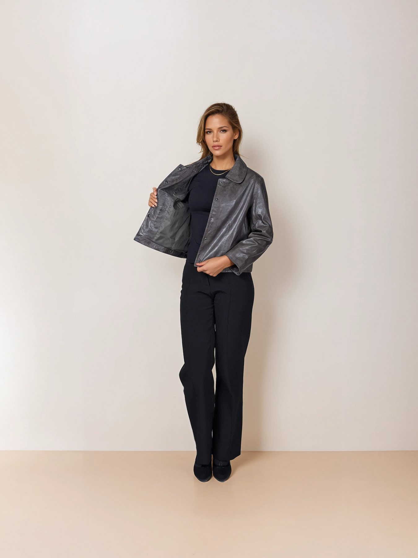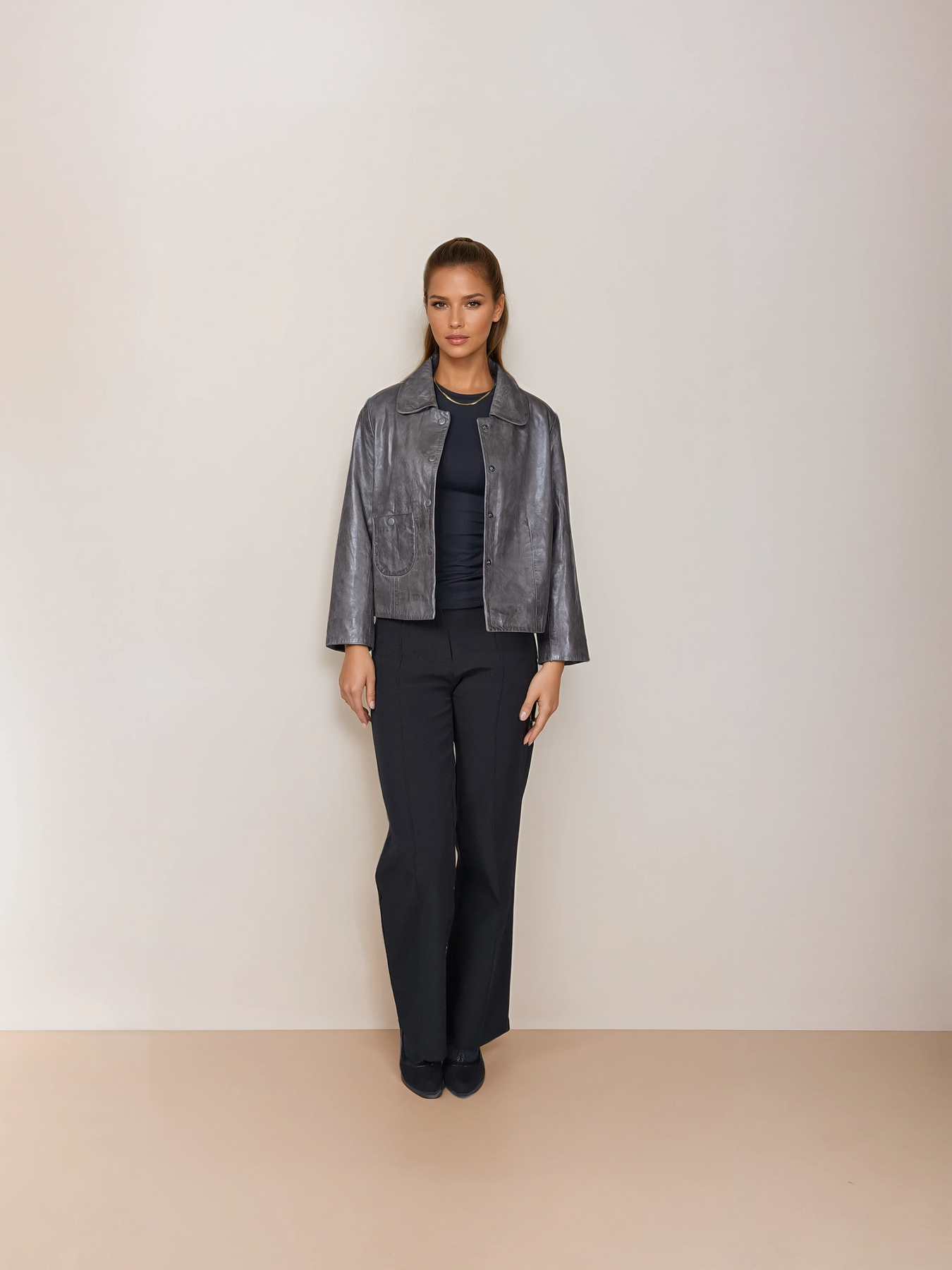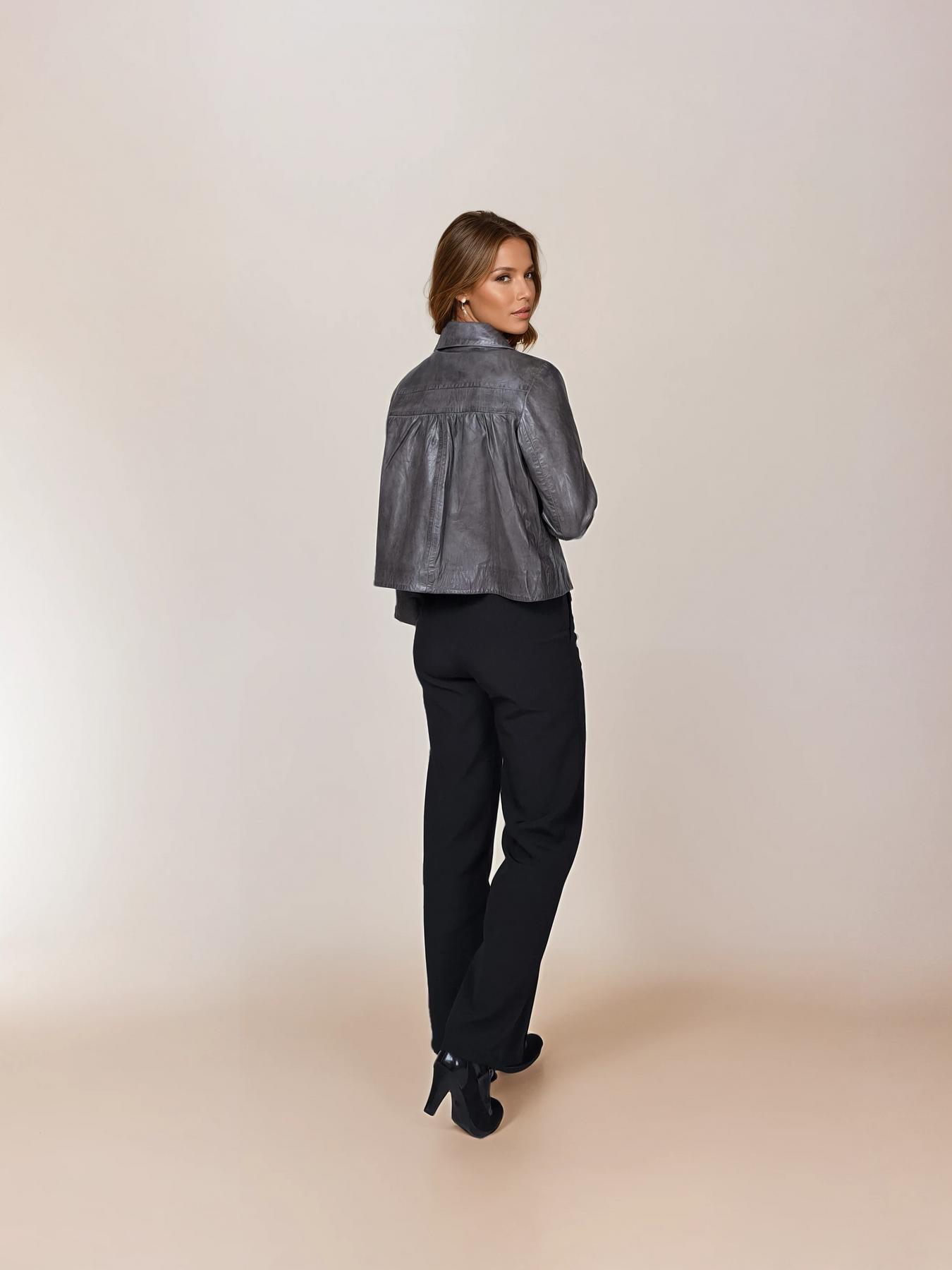 Marley captures contemporary elegance through its precisely cropped 53 cm cut and luxurious lamb leather collar. The smart proportions create a flattering silhouette that transitions seamlessly from office to evening, while the rich grey leather ages beautifully with each wear. Crafted for the woman who appreciates understated luxury, this jacket pairs with everything from tailored trousers to weekend denim. A timeless investment piece that embodies refined taste and enduring style.