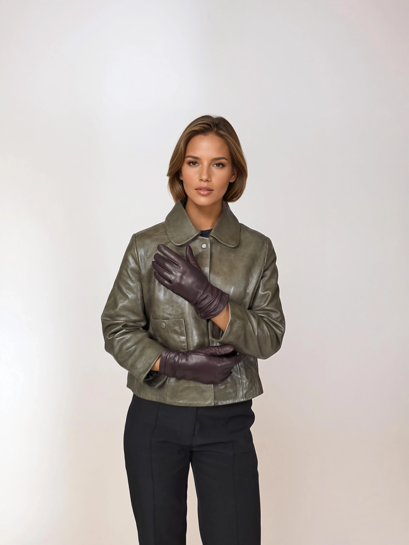 These elegant dark brown leather gloves showcase refined craftsmanship in every detail. Constructed from supple lamb slink leather, they feature a subtle gather at the wrist that creates a sophisticated silhouette. The thoughtful design element adds visual interest while ensuring a secure, comfortable fit. A timeless accessory that completes any polished look with understated luxury and effortless elegance.