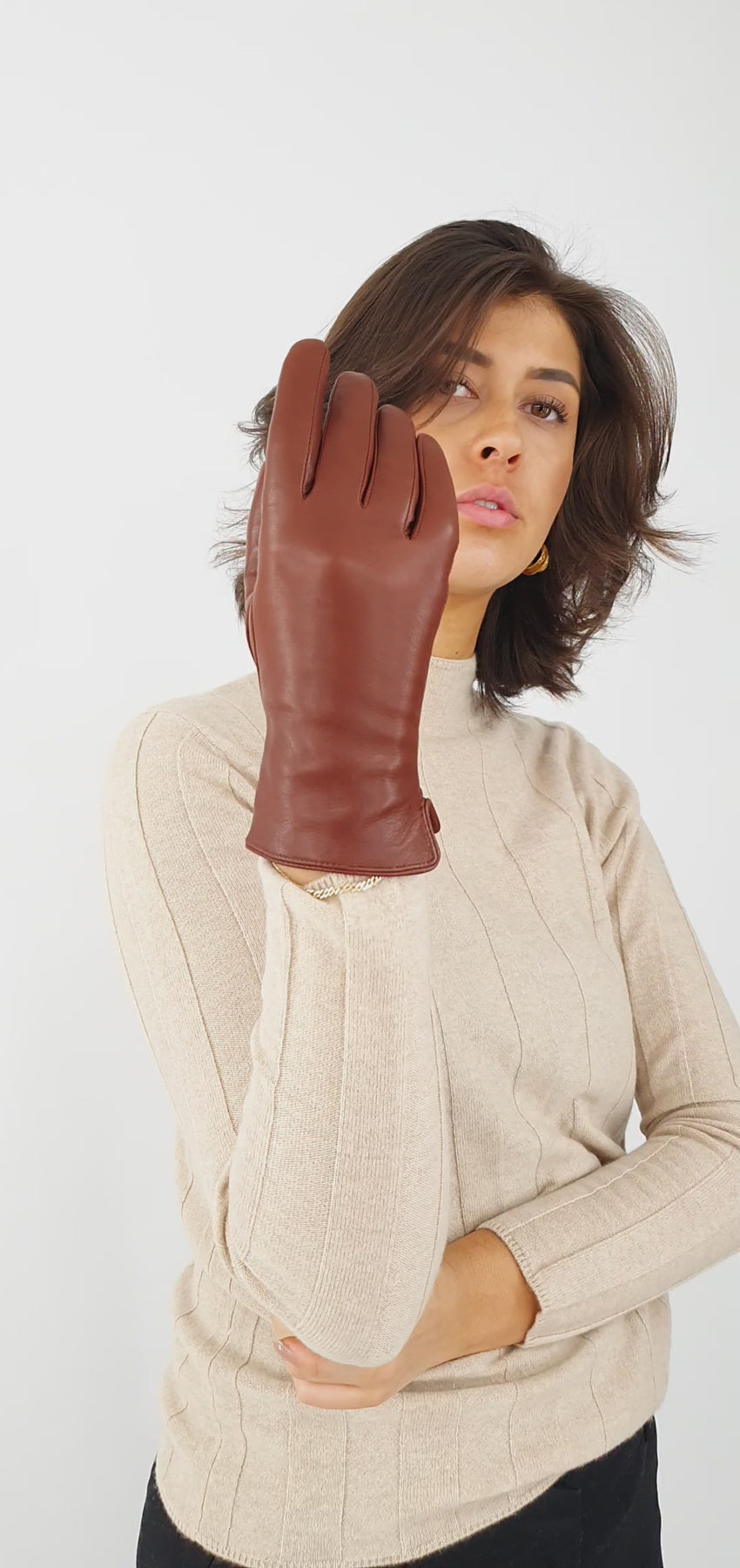 Stay warm and stylish this winter with our brown lamb leather gloves for women. The soft, supple leather is complemented by a cozy 50% wool and 50% polyester lining, providing both comfort and warmth. These gloves are perfect for a variety of occasions, from casual outings to formal events. With their versatile design and top-quality materials, these gloves are a must-have for any fashion-conscious woman. Order now and stay warm and stylish all season long