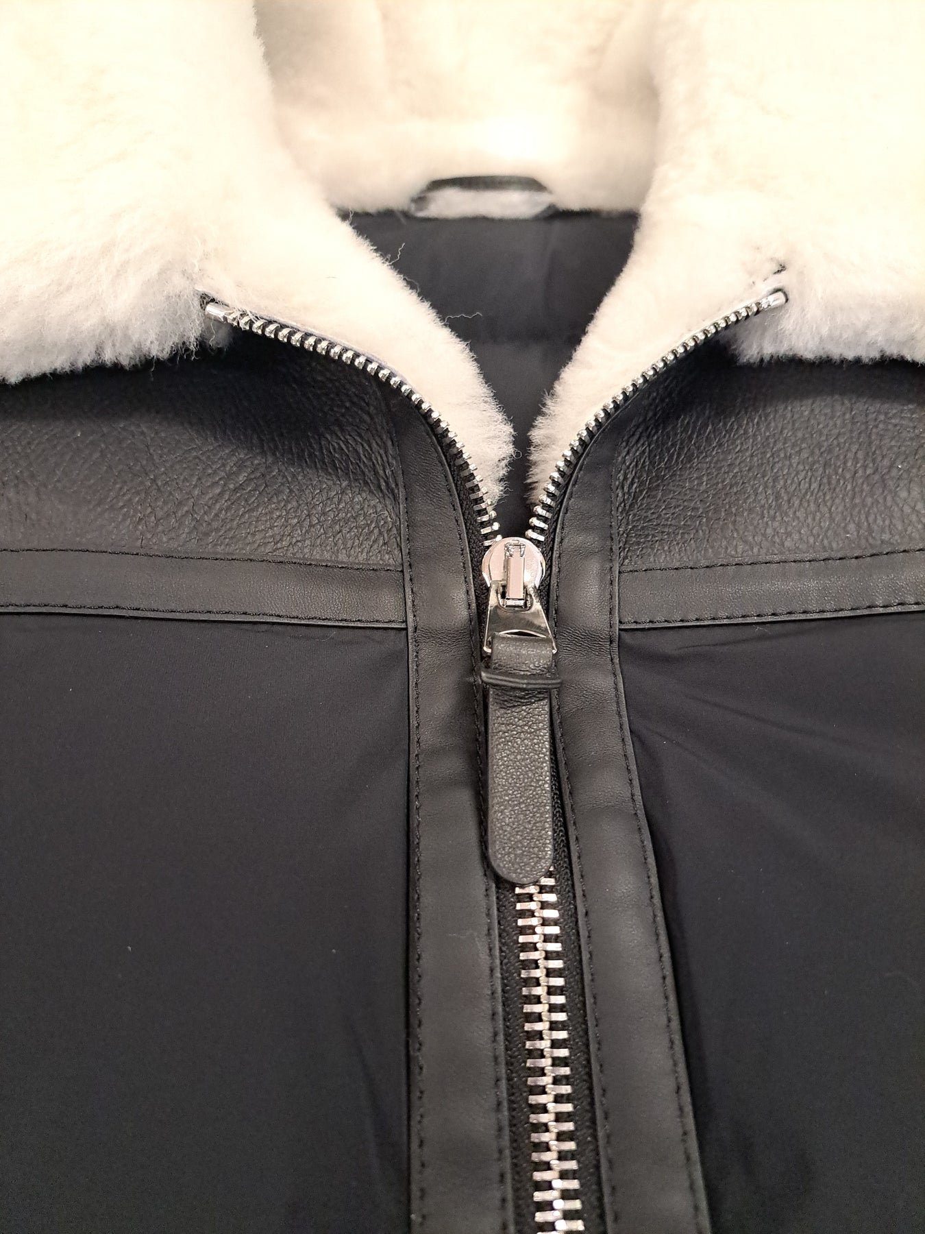 The Jake merges two classics into one versatile piece. This men's jacket pairs responsive down insulation with lamb fur accents, delivering both thermal efficiency and refined texture. At 67 cm, it hits the perfect length for layering or standalone wear. The sleek black finish works across seasons and occasions—a dependable investment for the modern man's outerwear rotation.