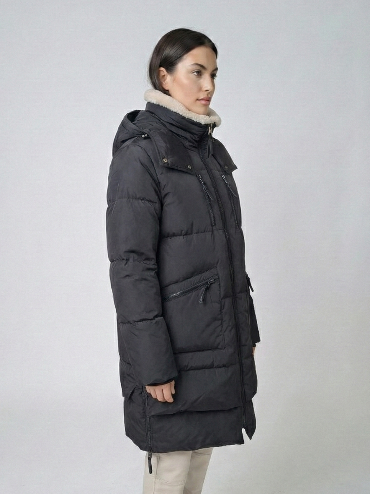Denne 90 cm sorte dunjakke fra Levinsky er designet til kvinder og har en lammeulds krave. Hold dig varm og stilfuld med dens høj kvalitet materialer og gennemtænkte design. Perfekt til koldt vejr er denne jakke et must-have for enhver vintergarderobe.