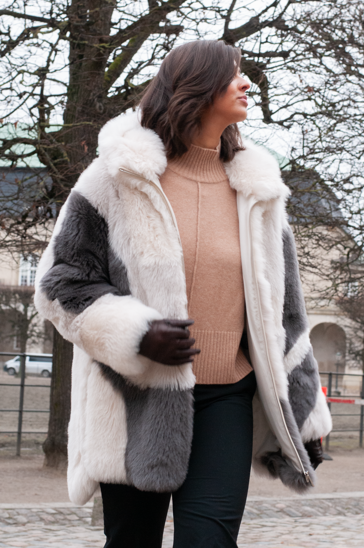 Definieren Sie Ihren Winterstil mit dieser herausragenden Toscana-Lammjacke. Hergestellt aus den meisten Luxuriöser und leichter Toscana-LammfellEs verfügt über ein auffälliges, modernes Patchwork aus weichen grauen und cremefarbenen Einsätzen. Der großzügige Kragen und der saubere Reißverschluss vorne sorgen für eine moderne Silhouette, die überzeugt außergewöhnliche Wärme und müheloser Chic. Dies ist das ultimative Statement-Stück für eine anspruchsvolle Garderobe.