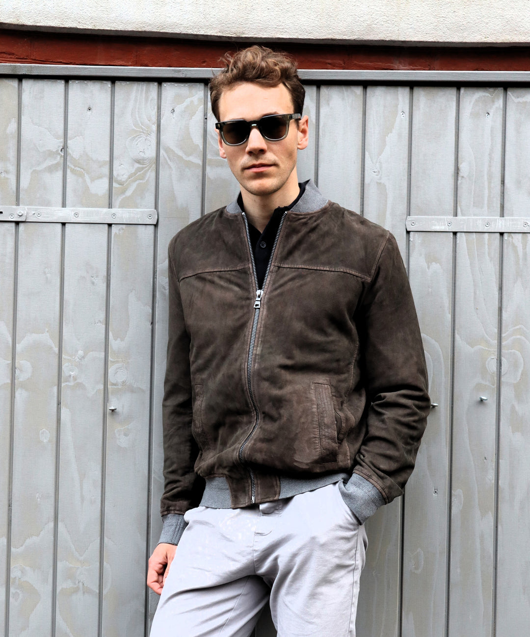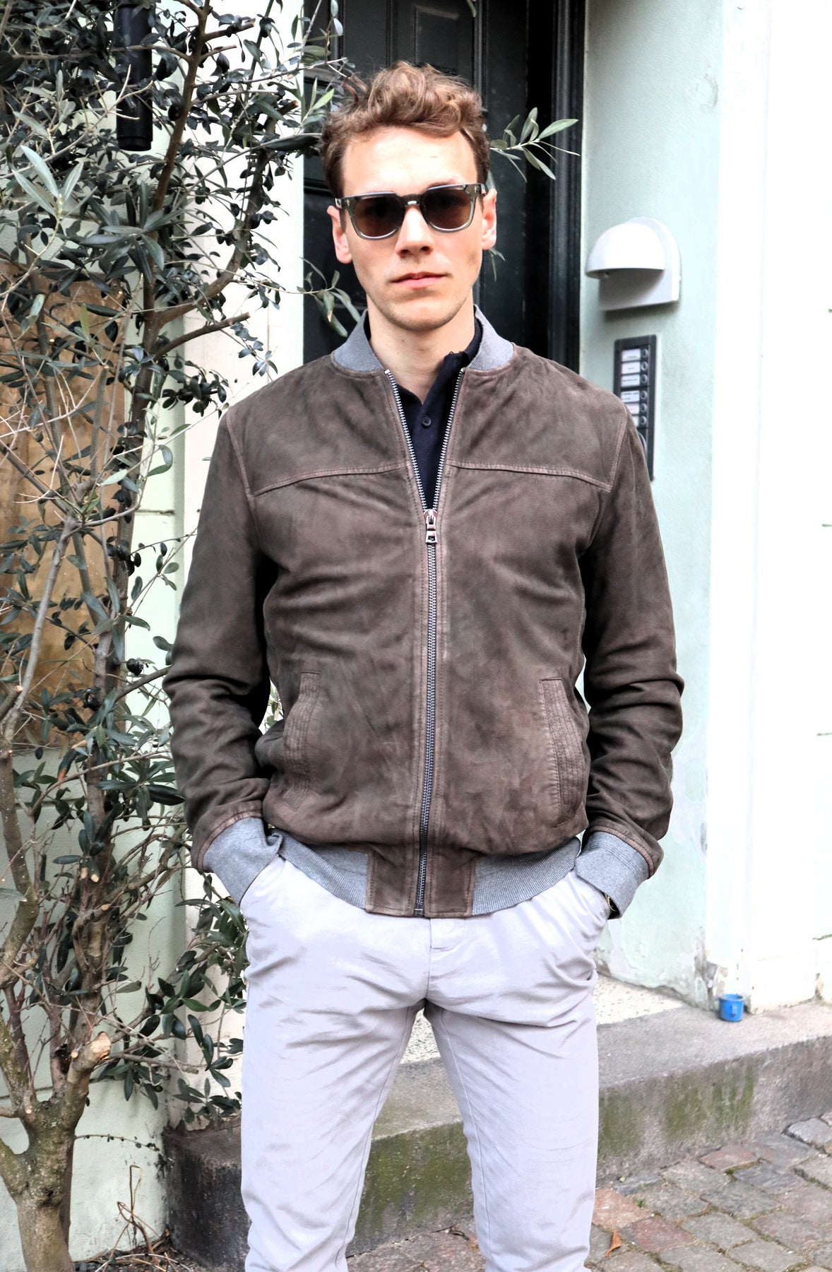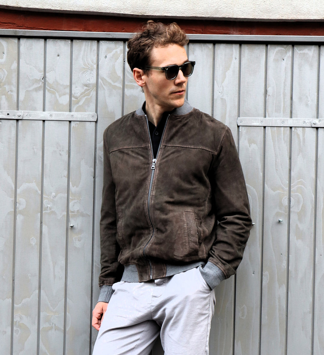 Wir stellen Ihnen Allan vor, den Inbegriff von Luxus und Funktionalität. Diese graue Jacke ist zu 100 % aus echtem Ziegenwildleder gefertigt und strahlt Eleganz aus. Zweckmäßig gestaltet mit mehreren Taschen und einem Rippkragen und -bündchen für eine einwandfreie Passform. Das kühle Baumwollfutter sorgt für eine entspannte Note. Vom Exklusiven Levinsky Marke.