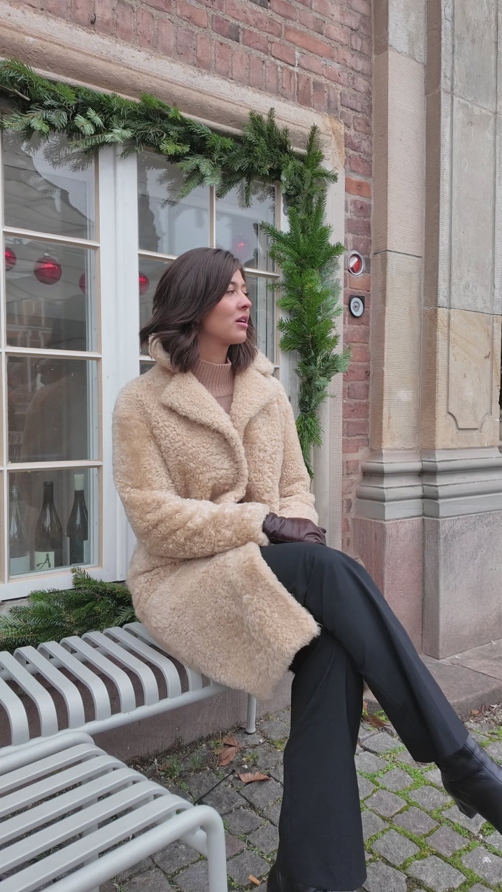 Hüllen Sie sich in den erhabenen Luxus unseres Lacoon-Lammfellmantels. Außergewöhnlich weich Bei Berührung bietet dieses zeitlose Stück unglaubliche Wärme in einem überraschend leicht Design. Seine elegante, lange Silhouette und das klassische Revers sorgen für einen Look von müheloser Raffinesse, perfekt, um jedes Winter-Ensemble aufzuwerten.