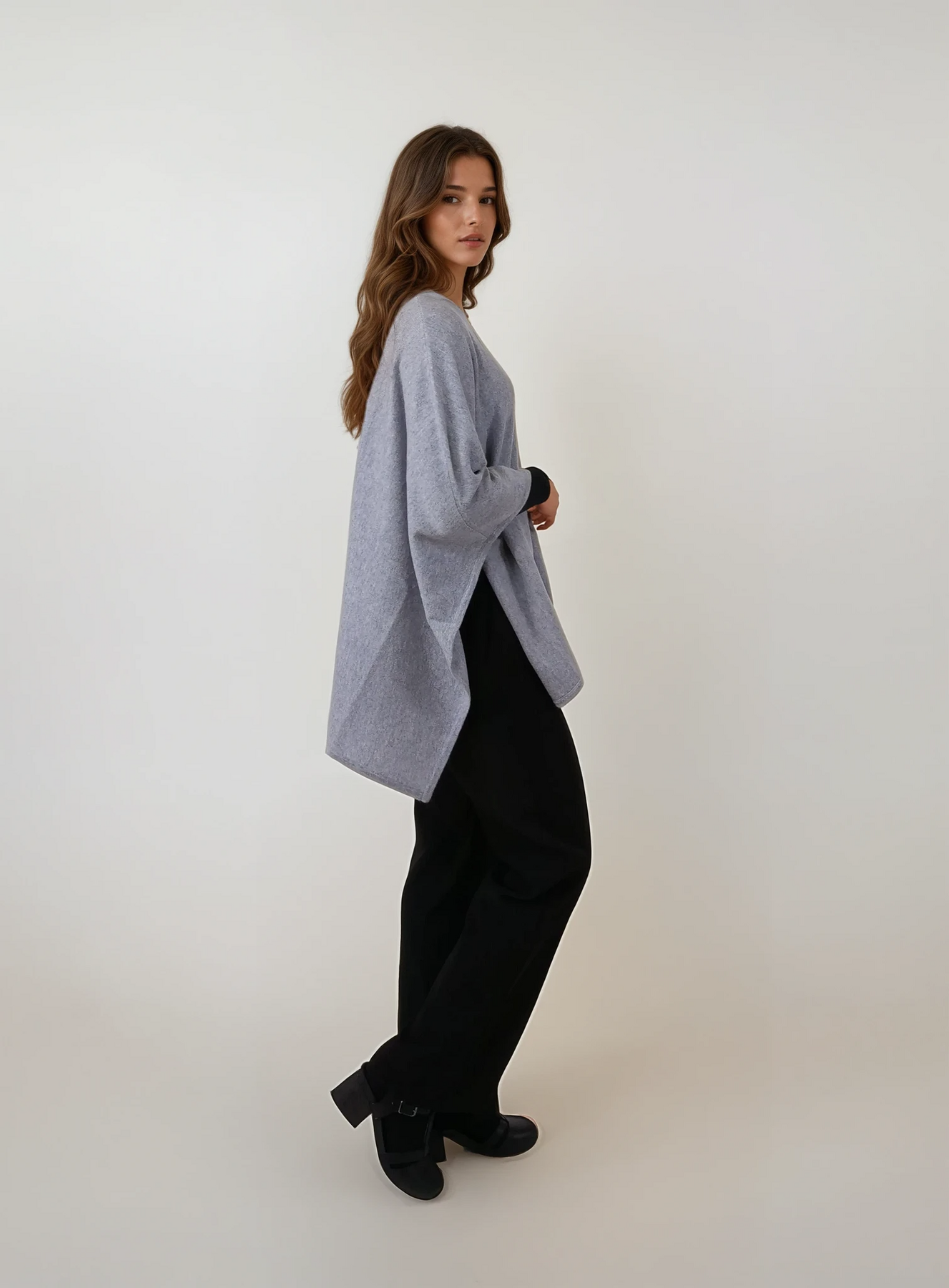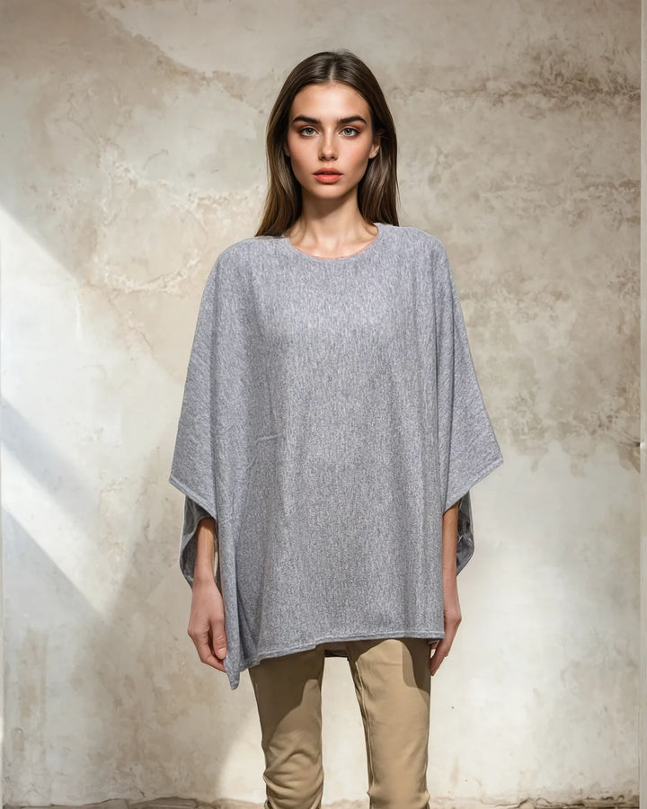 Werten Sie Ihre Garderobe mit unserem luxuriösen Poncho SY-9026 auf. Dieser gestrickte Poncho besteht aus 100 % reinem Kaschmir und ist perfekt für jede Frau, die sowohl Komfort als auch Stil sucht. In einem eleganten elektrischen Grau ist es mit Sicherheit ein Statement und sorgt für Gemütlichkeit. Kleiden Sie es für jeden Anlass schick oder lässig.
