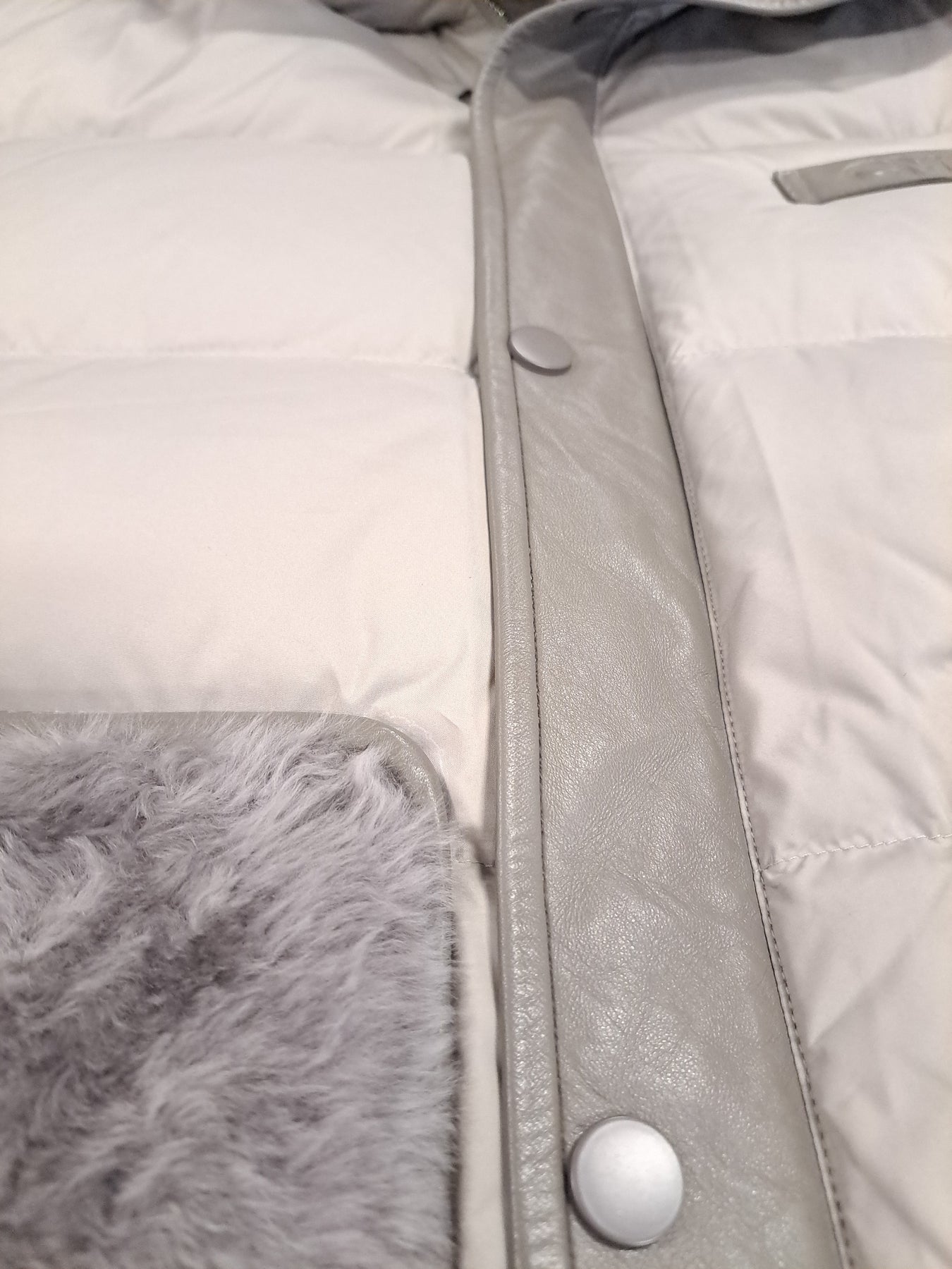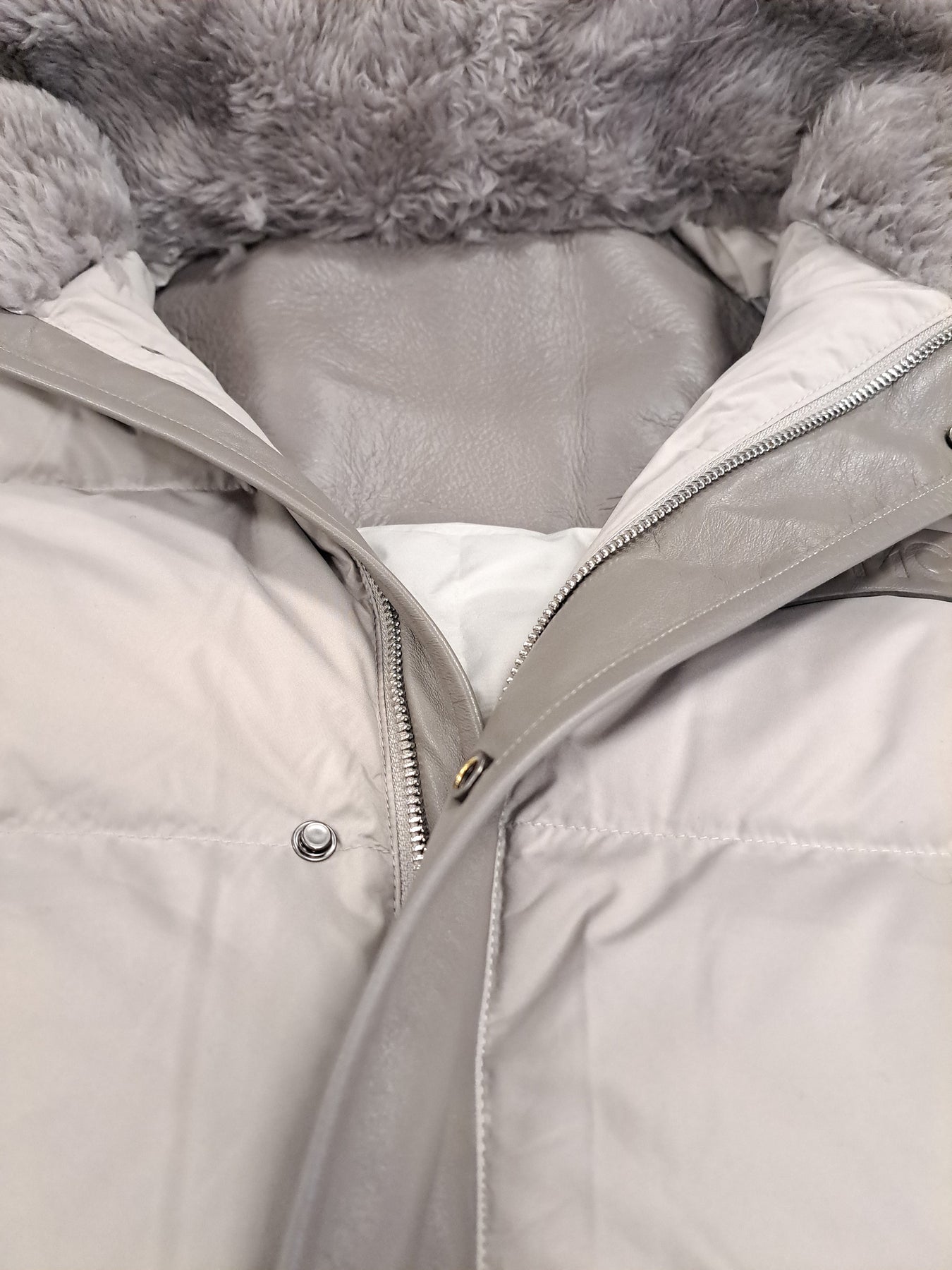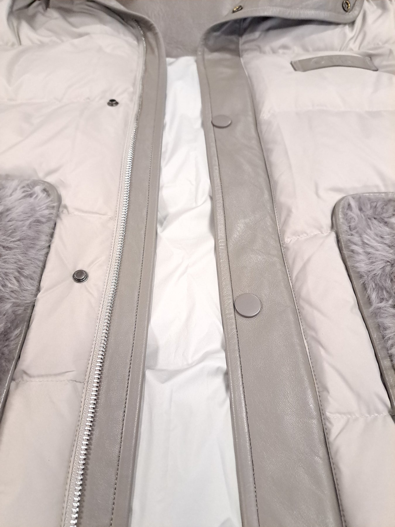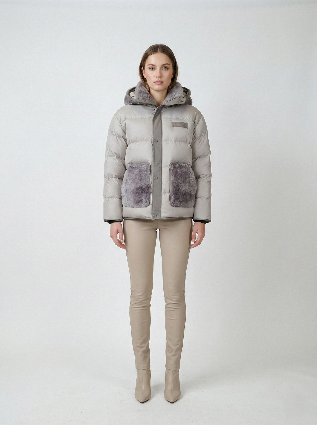 Meet your winter essential. The Jovina down jacket delivers warmth without bulk, featuring premium down insulation perfect for cold Danish winters. Lamb leather pockets and hood collar add refined detail and durability, while the 68 cm length provides ideal coverage. A sophisticated grey silhouette that pairs with everything, built to keep you comfortable season after season.