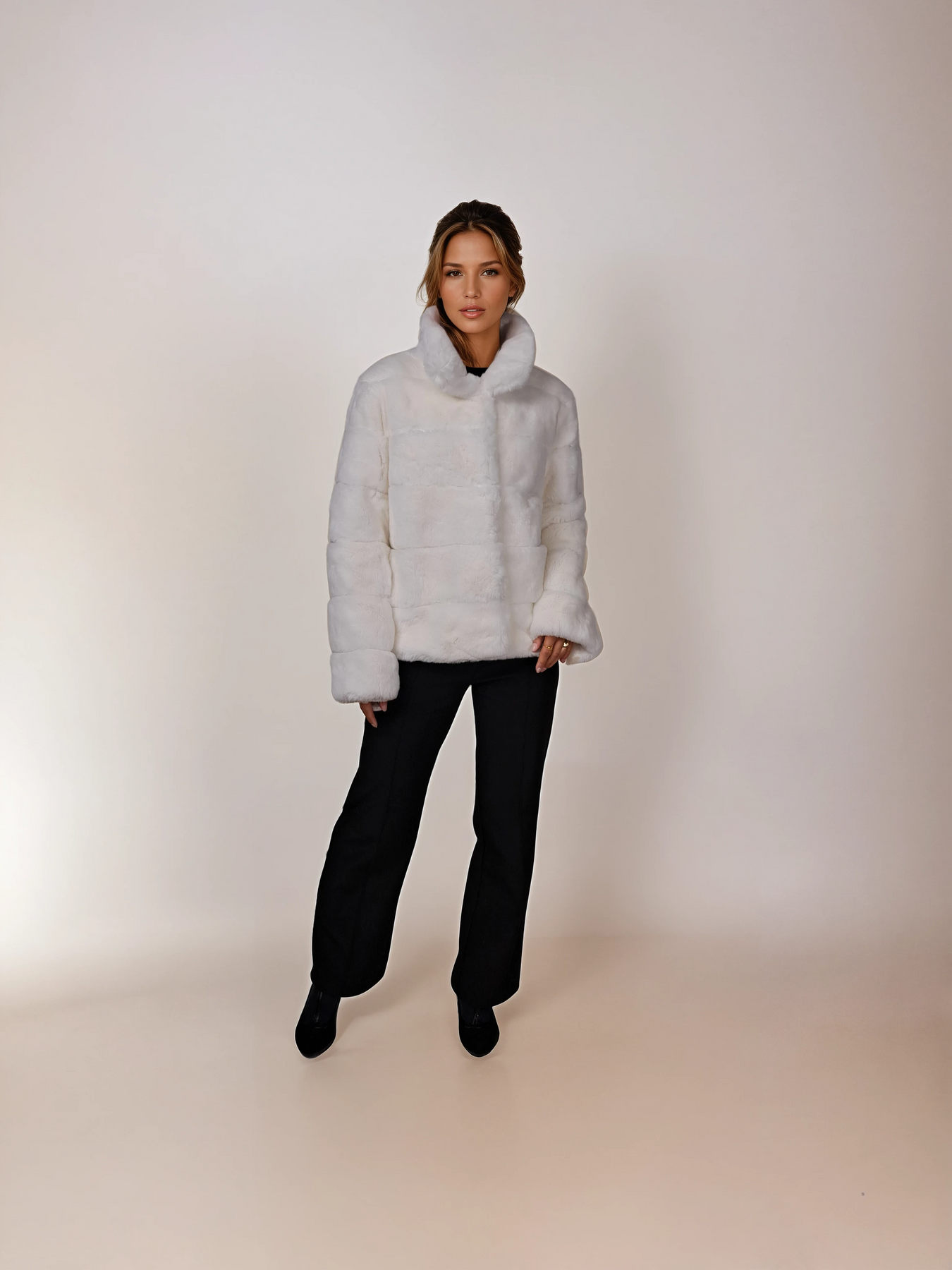 Stampe Denmark is introducing the Petrovski, 60 cm., Collar Rex Coat for Women in Black – a perfect fusion of nicety, classic style, and sporty sophistication. Crafted from beautiful white rex rabbit fur, this short coat is designed to keep you warm throughout the winter season.