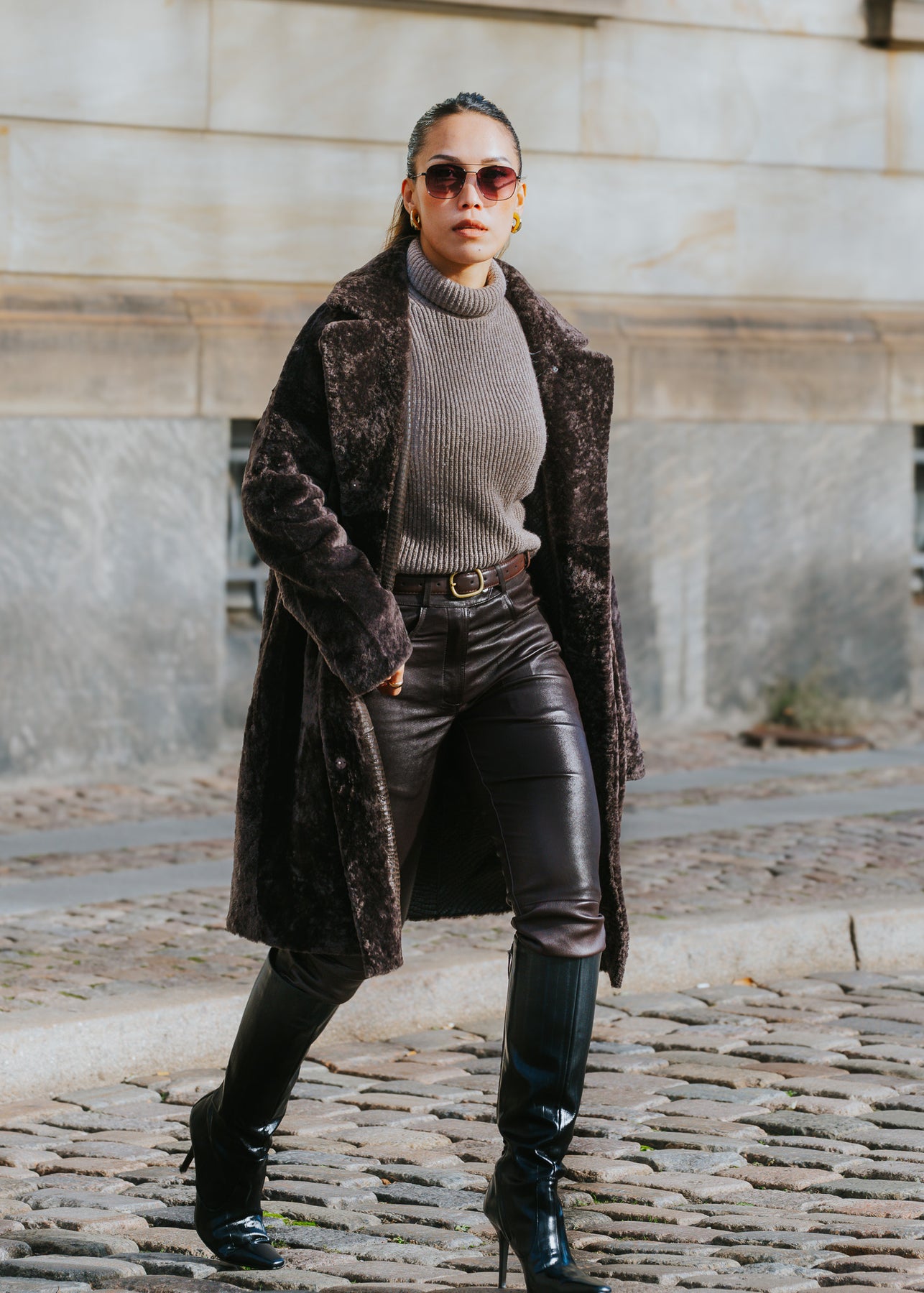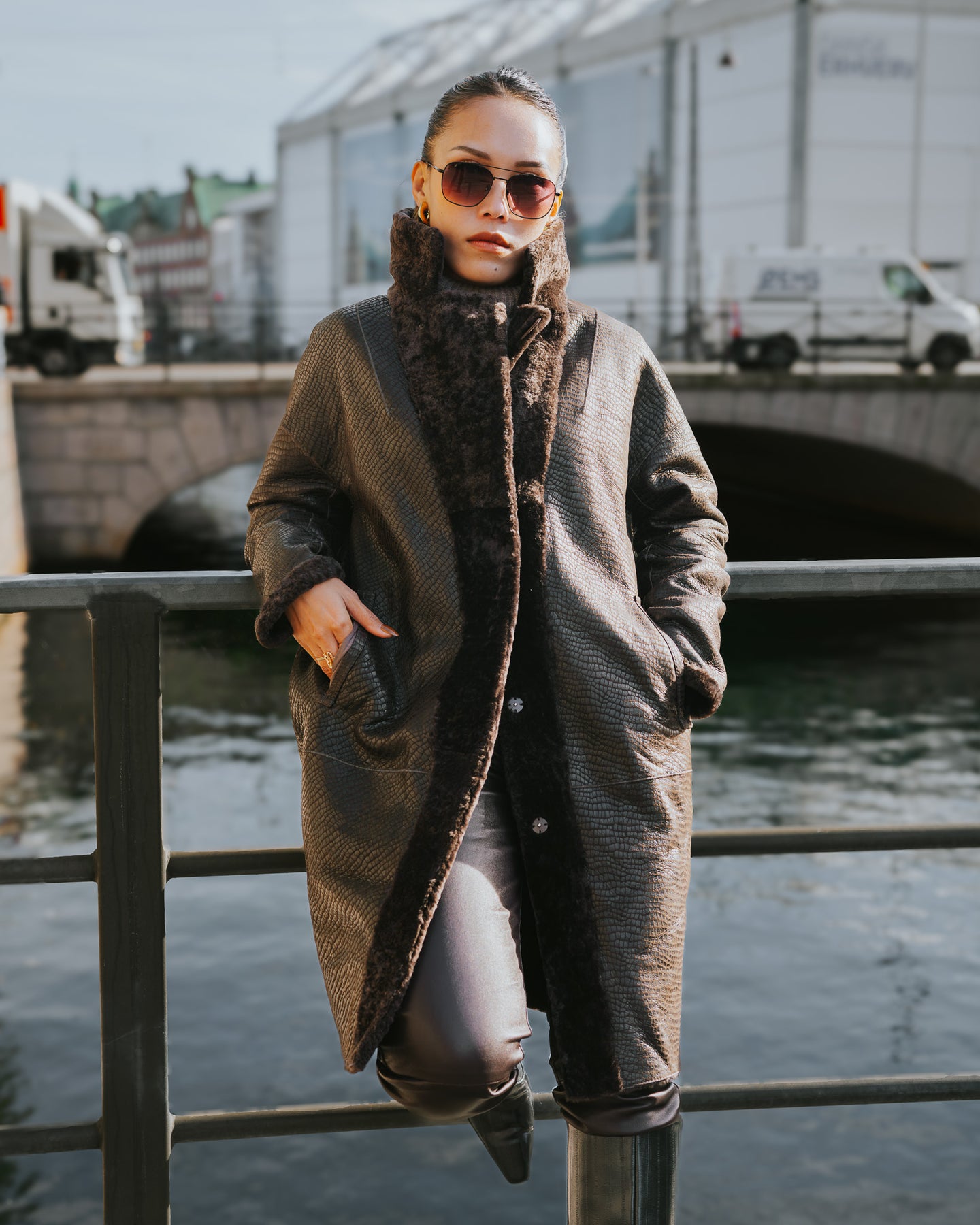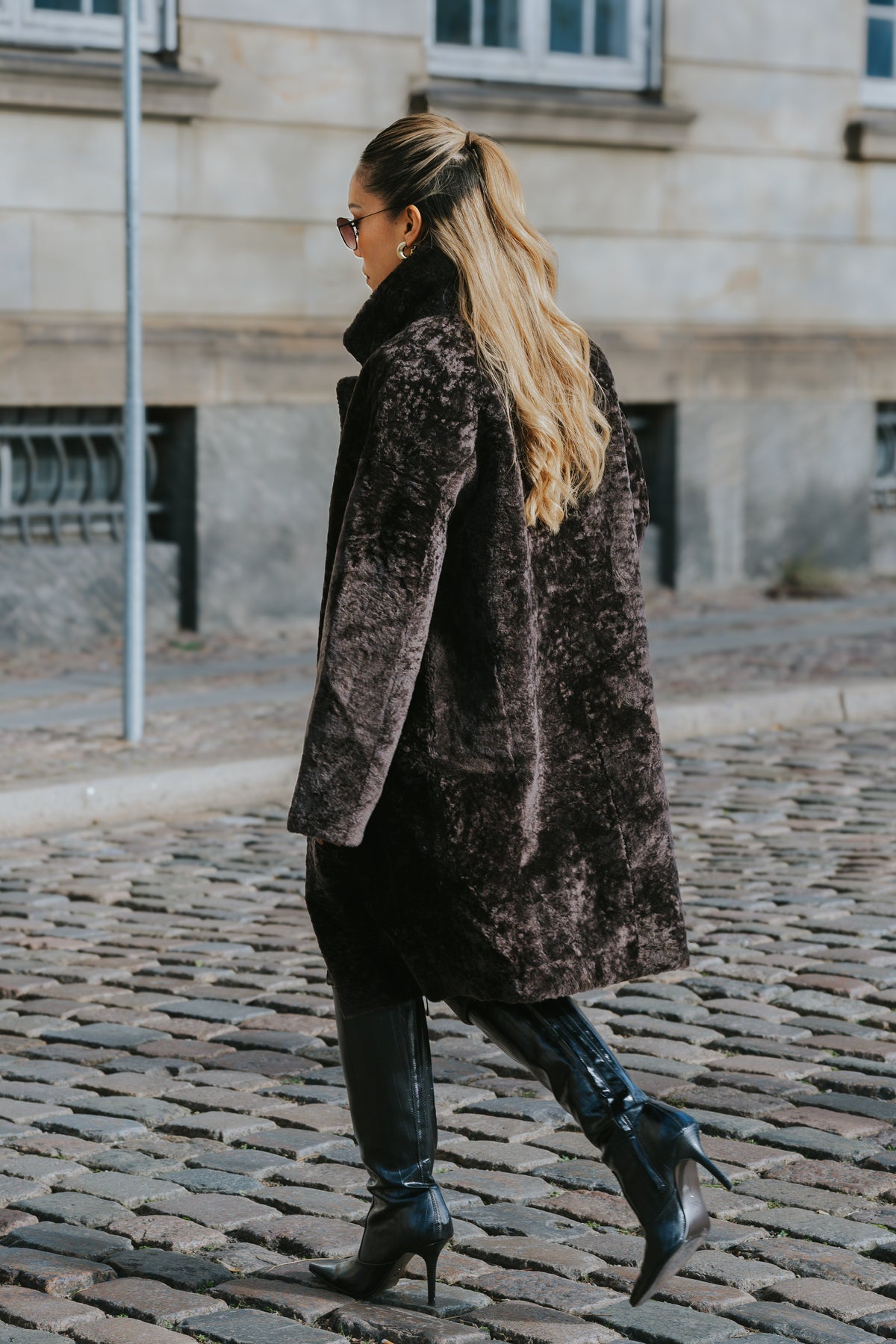 This exquisite lamb fur coat combines softness and lightness with a luxurious Nappa leather lining for exceptional comfort. Its thoughtfully designed inverted collar offers a refined silhouette and can be fully closed at the neck, providing warmth and elegance. Crafted with reversible outer leather, this versatile piece allows you to switch styles effortlessly, making it a timeless addition to your wardrobe.