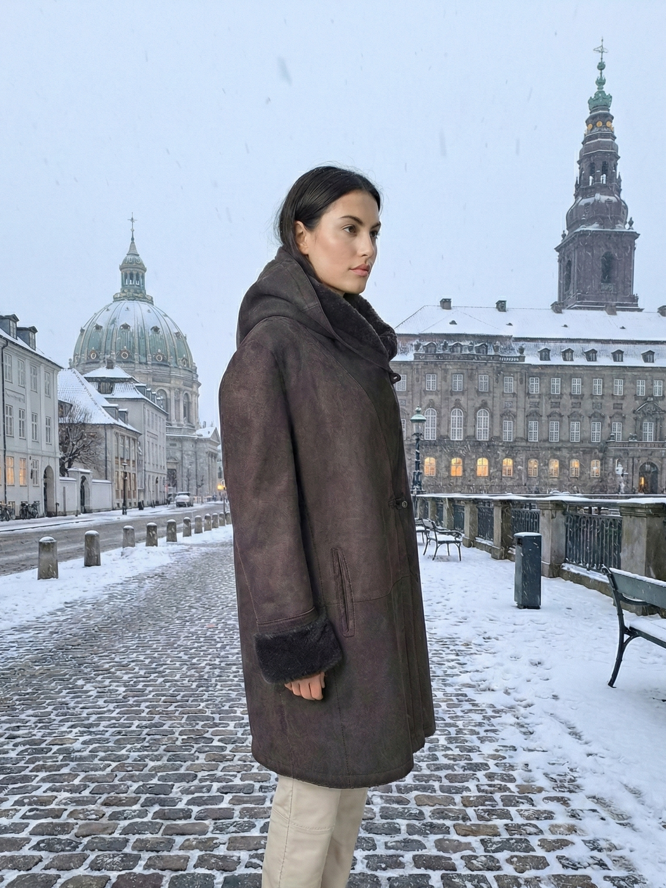 969, 90 cm. - Hood - Suede Lamb - Women - Dark Brown