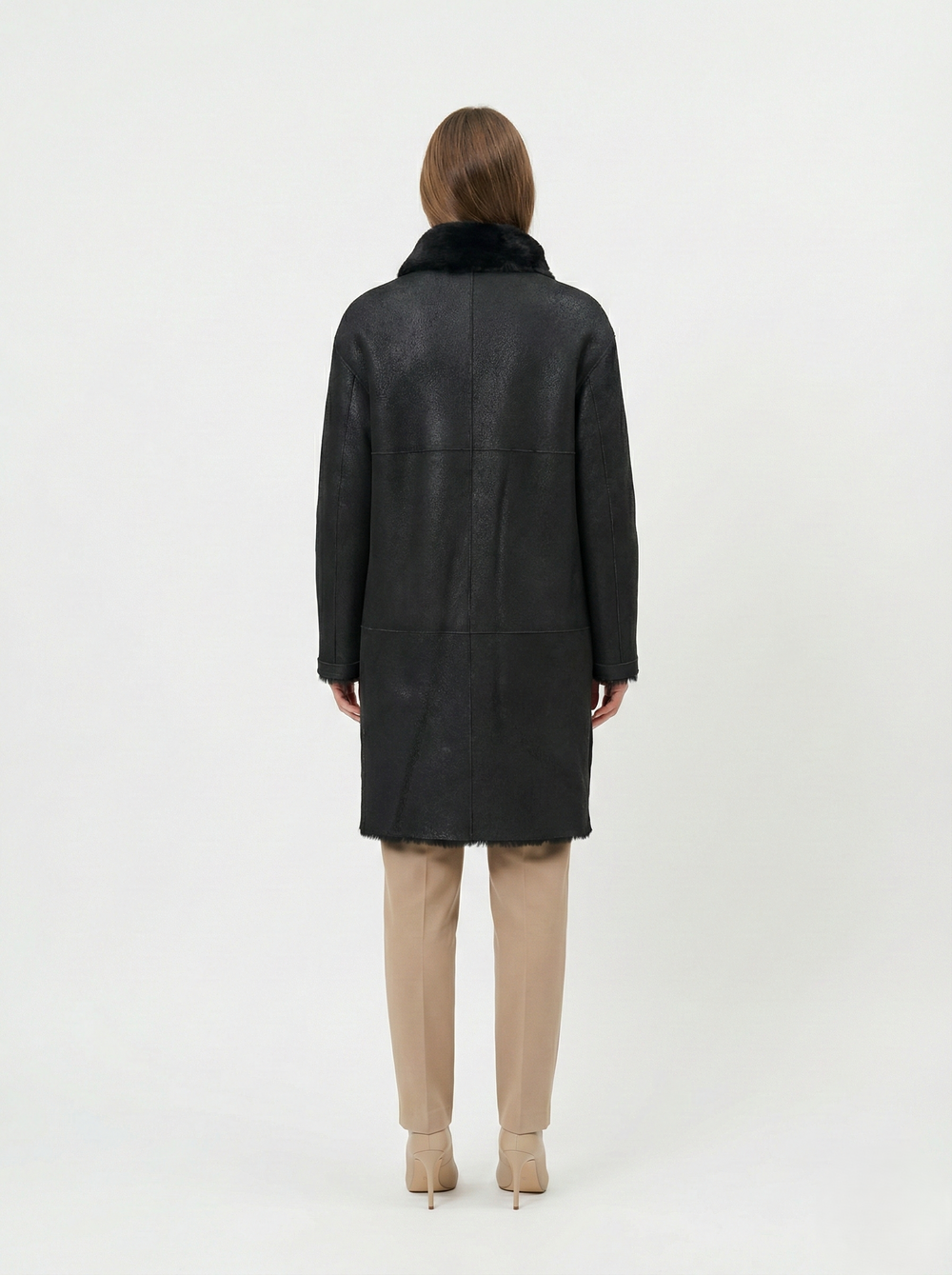 The Giorgiana from 95 cm long. is a timeless and classic piece to add to your wardrobe. The jacket is expertly crafted with luxurious Nappa Lamb Crack Washed material, featuring a reversible design for versatile styling. Its fashion details, such as the side vent with its gorgeous zipper, are sure to make a statement. Have both style and warmth with this classic black jacket.