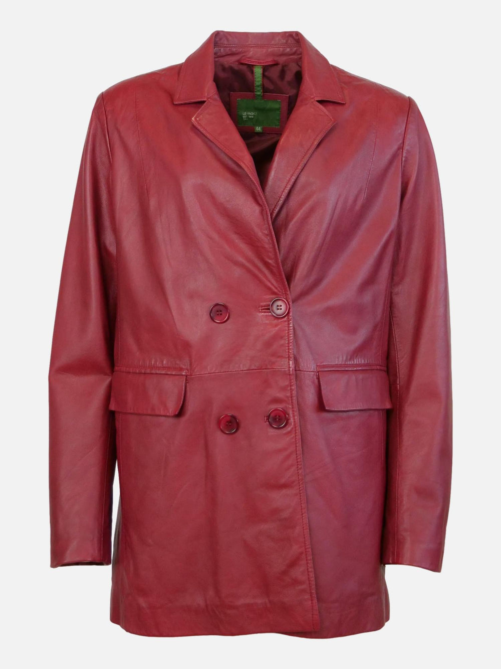 Introducing the Jasper Lamb Malli Leather Jacket for women, featuring a classic blazer style and vibrant red lamb leather. Stay organized with the inner pockets while enjoying the comfort and durability of the 100% polyester lining. Elevate your wardrobe with this stylish and functional jacket.