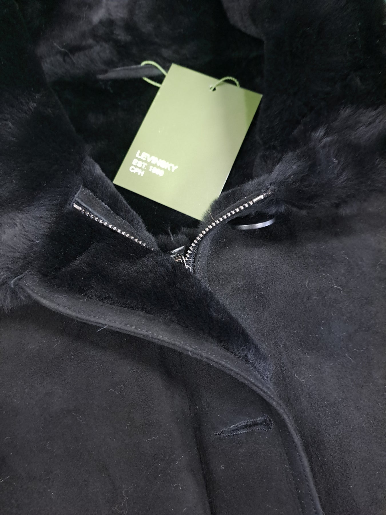 Olivia is a lightweight suede lamb jacket crafted for warmth without bulk. Made entirely from premium suede lamb, this 62 cm jacket delivers soft, supple comfort with natural insulating properties. The short cut offers modern versatility—layer it over dresses or wear solo for understated elegance. Created by Levinsky, this essential black piece combines tactile luxury with practical everyday wearability, making it a refined addition to any wardrobe.