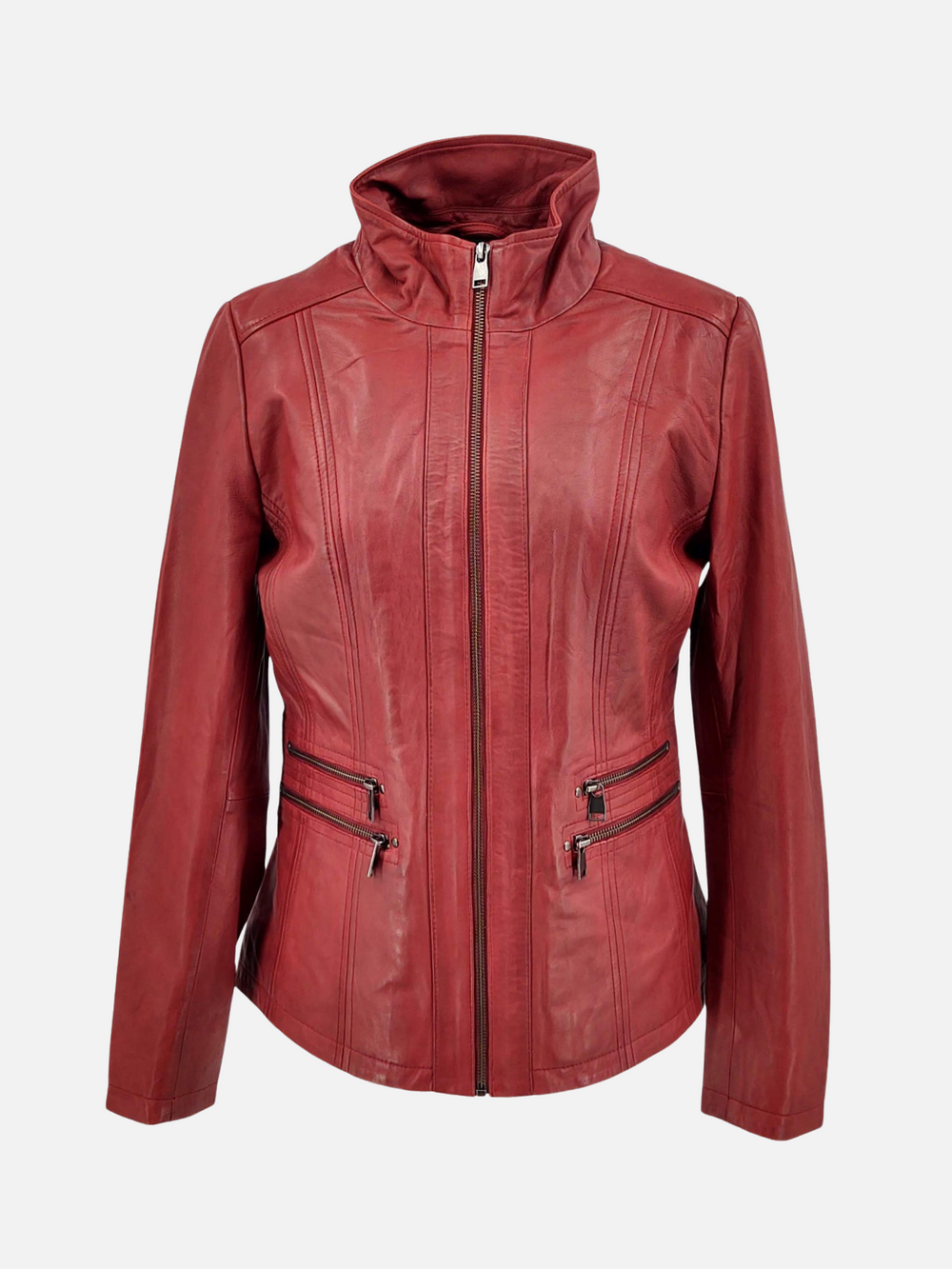 Teija - 2 - Lamb Malli Leather - Women - Red / Læder Skinds Jakke - Levinsky - Kvinde