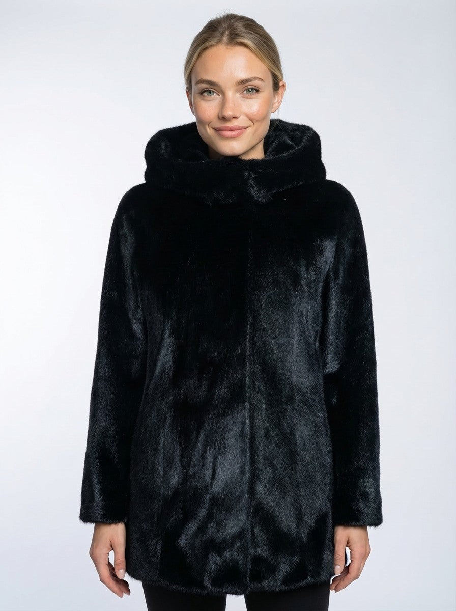 Trinity's 73 cm hooded seal coat offers a sleek silhouette with an adjustable interior tunnel waist for flattering fit. Quality craftsmanship is evident in its water-resistant fabric and lightweight construction. An essential for any wardrobe.