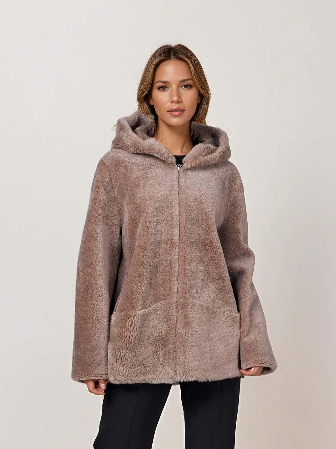 The Ilda redefines modern outerwear with its distinctive silhouette. Featuring an extended back length at 72 cm, this hooded jacket creates an elegant, elongated line that flatters the frame. Crafted from breathable air wool in warm chestnut, it offers sophisticated warmth without bulk. The thoughtful proportions and premium fabric make this a refined choice for those seeking distinctive style with functional comfort.