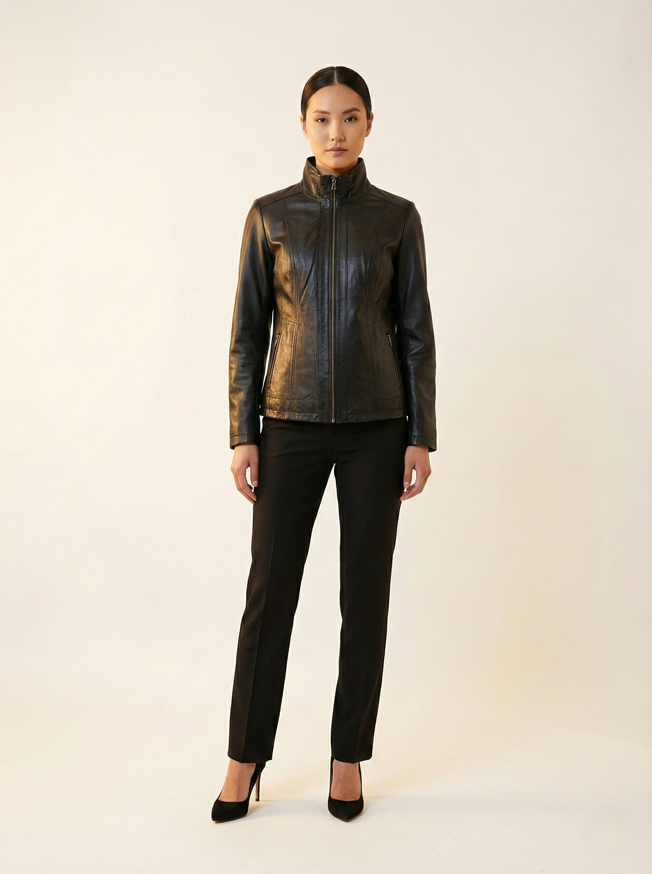 Unn deg luksus med Hanne, den ultimate lammeskinnjakken for kvinner. Den 60 cm lengden gir god dekning, mens glidelåsen gir en sikker passform. Laget av premium Lamb Malli Leather, utstråler det raffinement og tidløs stil, noe som gjør det til et must for ethvert mote-spiss individ.