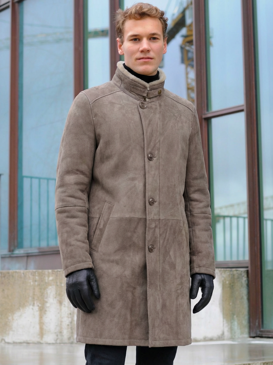 Herrefrakke i rulamspels. Prova denna klassiska rulamsjakke för män. Din krop vil ånde fritt genom pelsen och foret. Den flotte krave är vacker, när den är öppen, men kan också lukkes för din komfort, när det blir koldt.