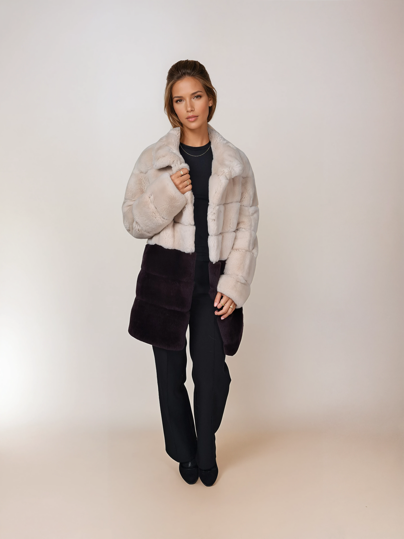 Hachan Rex-jackan är sakkunnigt utformad för kvinnor och har en elegant. Med dragkedja i sidorna för en anpassningsbar passform, kombinerar denna 80 cm jacka stil och funktionalitet sömlöst. Lyft din garderob med detta måste-ha-plagg.
